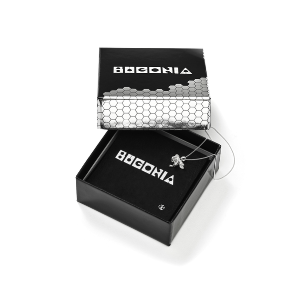The design of this necklace, the honey bee, is modelled on one of the prop insects from the film set itself. Bees form a central symbol throughout this dark and absurdist comedy, as a metaphor for the collapse of modern society. To model a pendant on this key motif in the film, the bee was 3D scanned to capture every minute detail, from the texture of the hairs to the segmented abdomen and curved stinger.